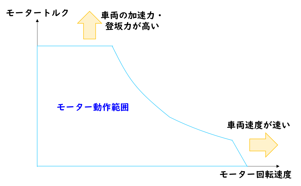 それでは広い範囲で高効率を実現するモーターと、そうではないモーターを見分ける方法はあるのでしょうか。一般的にモーターの定格出力は熱定格で書かれることが多く、それは定点での出力を指すため、残念ながら定格出力から走行モーターの効率の良しあしを見分けることはできません。